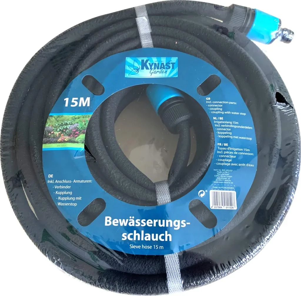 | Lieferumfang | 1 x Kynast Garden Bewässerungsschlauch 15 m schwarz mit Zubehör (1 x Schlauchverbinder, 1 x Kupplung, 1 x Kupplung mit Wasserstop) |