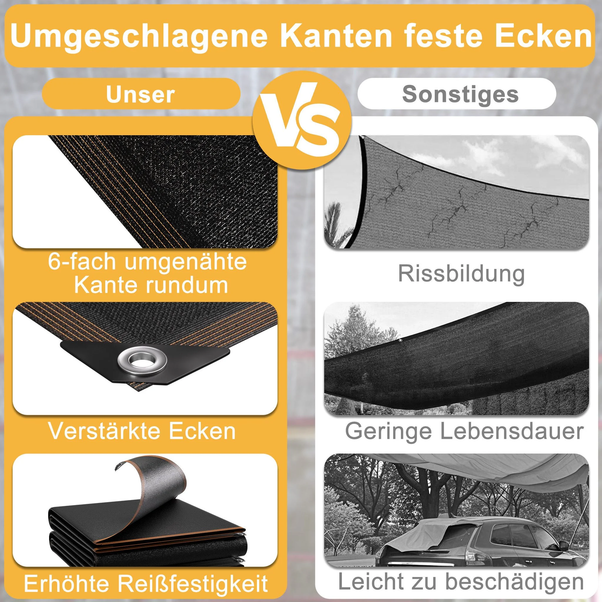 - Rundum Sonnenschutz: Über 90 % Beschattung und bis zu 95 % UV-Blockierung – reduziert direkte Strahlung spürbar.