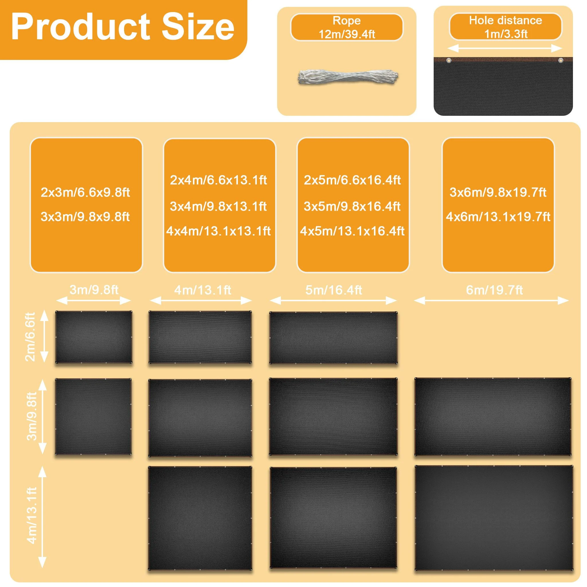 Das Sonnenschutznetz bleibt dank UV-Resistenz und robuster Verarbeitung auch bei starkem Wind und Regen stabil. Mobil einsetzbar: kompakt nach Lagerung und leicht mitzunehmen, etwa für kurze Aufenthalte im Freien. Vom Familiengarten über Balkon und Bauernhof bis zur temporären Beschattung auf Baustellen oder bei gewerblichen Außenbereichen – unterschiedliche Szenarien sind abgedeckt. Zuschnitt und Verbindung ermöglichen eine passgenaue Abdeckung, auch bei speziellen Maßen. Reinigung? Die beschichtete Oberfläche erleichtert die Pflege.