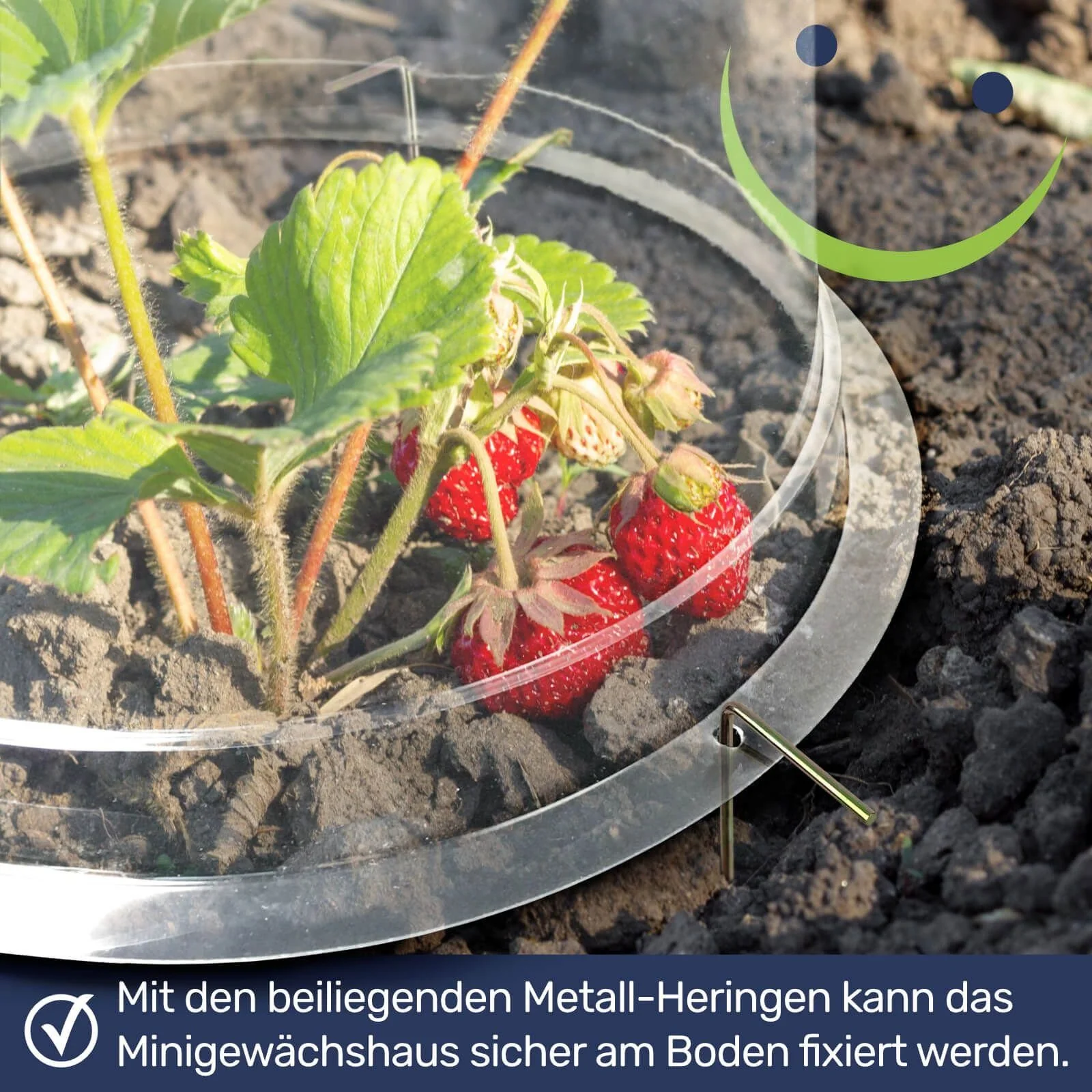Das Gravidus Gewächshaus Minigewächshaus 3er Set schützt Jungpflanzen zuverlässig vor Witterung und Tieren und lässt zugleich viel Licht an Saatgut, Setzlinge, Stecklinge sowie Kräuter und Gemüsepflanzen. Die glockenförmigen Hauben aus transparentem Kunststoff ermöglichen eine einfache Klimasteuerung über die Öffnung an der Spitze.