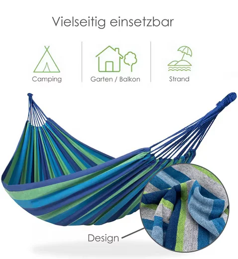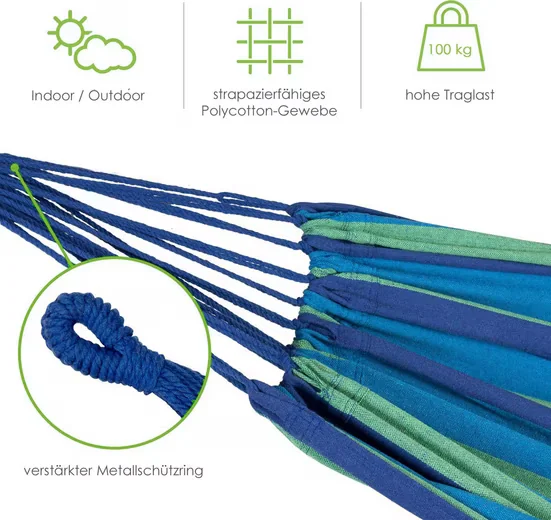 - Flexible Montage: für Hängemattenständer, Haken oder mit beiliegenden Seilen direkt am Baum.