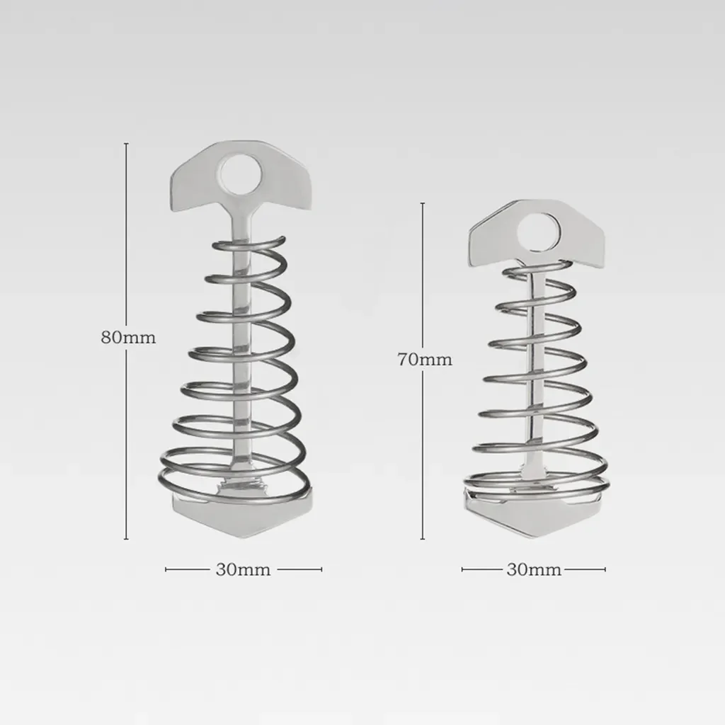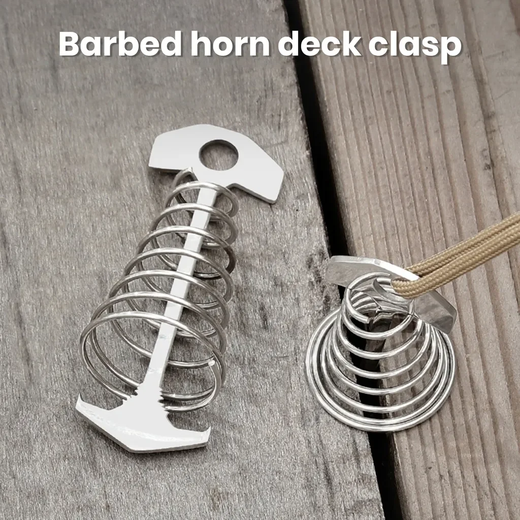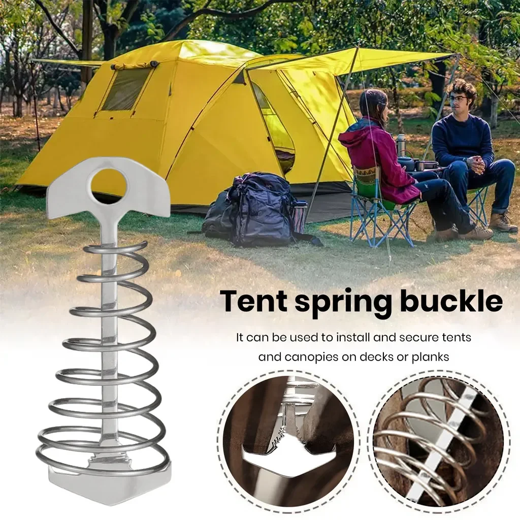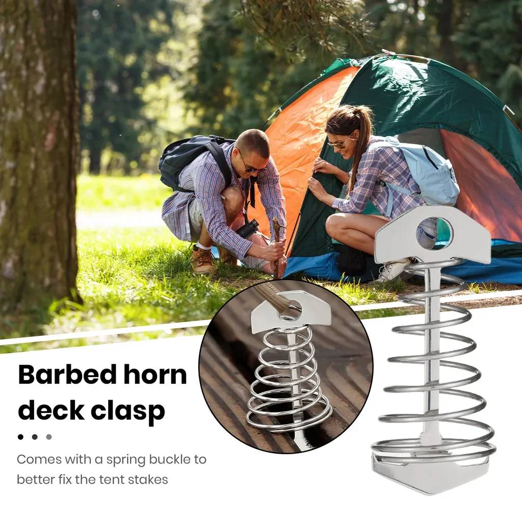 Die Zeltfederschnalle aus Edelstahl fixiert Zeltheringe in Lücken von Holzbrettern, Decks und Planken – schnell montiert, stabil verankert. Das rutschfeste Widerhakendesign verhindert ein Verrutschen oder Drehen bei Outdoor-Aktivitäten und unterstützt den Aufbau von Zelten und Vordächern.